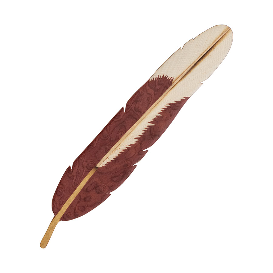 - "Falcon Feather" Marquetry carved wood bookmark with feather shape